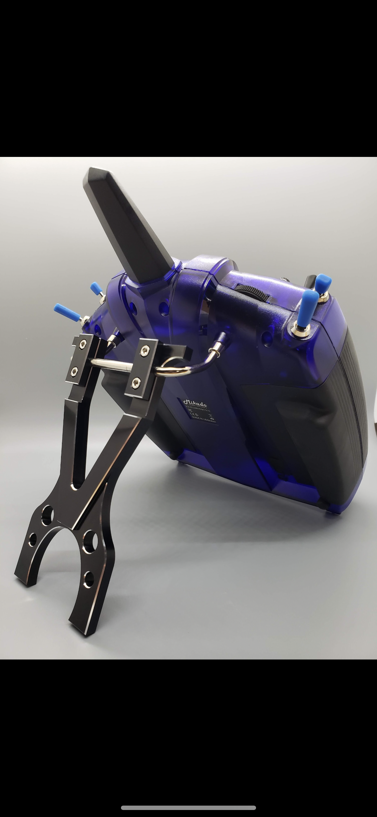 Elevate your transmitter setup with the Absolute CNC Products Folding Transmitter Stand-precision-engineered for the Mikado V-Control series. Crafted from high-quality aluminum and beautifully anodized in your choice of black or blue, each stand features chamfered edges for a sleek, refined appearance and added strength. This foldable design provides both functional stability and compact portability, making it the perfect upgrade for pilots who demand durability and style on the flight line.
